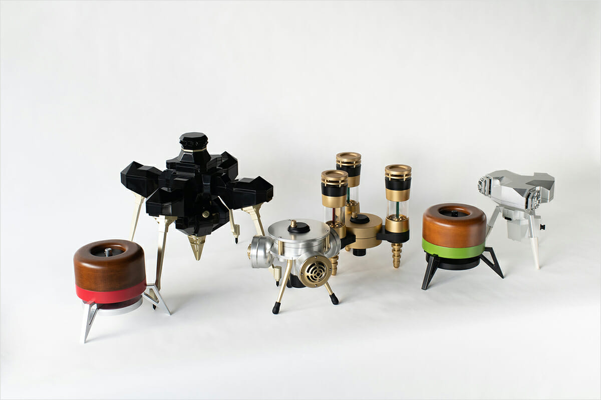 川崎の作品は一見プラモデルのように見えますが、これらの作品は全てスピーカーになります。そのメカ的な外観からは想像できない音を出すオブジェです。個々の作品をご覧いただくだけでなく、新しいジャンルを切り開く彼の創造性をぜひお聴きください。