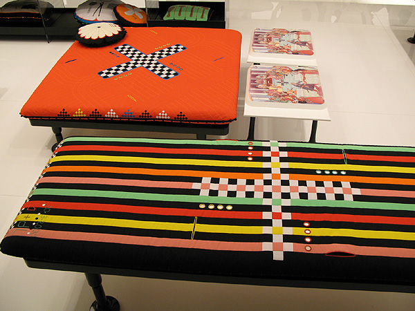 インディアンの叙情詩からインスパイアされたパターンがデイベッドに刺繍されている。ロシアンアヴァンギャルドに通じるエスノロジカルな印象。