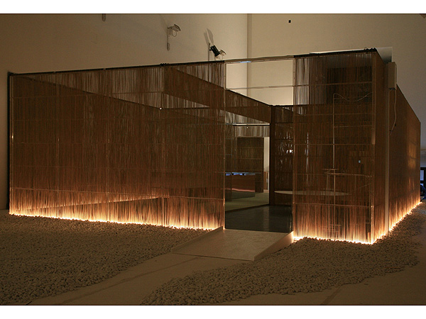 「つなぎ」というタイトルで隈研吾氏設計の展示空間。快適な和の居住空間の提案を行った。