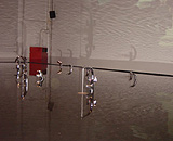 アルテミデ社は近未来的な照明も多く出しているトップ・ブランド。ショールームの入り口にあったライトはロス・ラブグローブの新作《Mercury sospensione Mercury soffito》。楕円形のランプが連なるシーリング・ライト。シャンパンの泡のよう。
