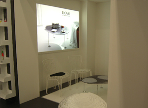 ROBOTSはアルミやスチールといった金属素材を主に用いた家具メーカーで、店舗用の専用什器なども数多く販売しています。あまり知られていないメーカーかもしれませんが、ブルーノ・ムナーリやエンツォ・マーリ、リチャード・サッパーなどの製品も作っており創業以来一貫した製品はいずれも素晴らしいものばかりです。 さて今年の新製品も収納家具がメインでしたが、素材の特徴を活かした美しい製品が目を引きました。中でも、ドルヴィーノ・ロマッツィがデザインした、コートフック付きのスタンドミラーやハンガースタンドは機能、デザイン共に申し分なしでした。