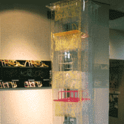 自由に手に取って形を変型させる理論モデルや、新しい都市の居住区の模型、 列柱状の照明器具など、自由な発想による作品が目を引きました。 |