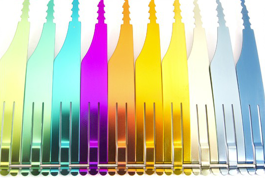中でもic! berlinのエンジニアチームによる長年の研究の末実現したエレクトリックコーティングの技術は、海外の展示会でも非常に高い評価を受けている。通常のネジ付きのメガネよりもパーツの表面がこすれあう機会が多いic! berlinのアイウェアには、吹き付け塗装よりも摩耗などに強く耐久性があるPVDコーティングが採用されているが、鮮やかな色みを定着させることが難しいため、これまで不良が起きやすい色は使われていなかった。今回、ナノレベルにクリスタルをコーティングし、鮮やかな色彩を生み出すエレクトリックコーティングの技術開発により、その問題が見事に解消されたのだ。ic! berlinのデザインの可能性がまたひとつ広がった。