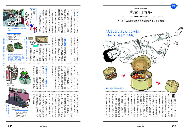 本書は現代アートを、誰にでもわかるカラフルなイラスト付きで解説した入門書。〈アーティスト編〉〈キーワード編〉の2章立てで、おさえておきたいアーティストやその代表作、現代アートを知る上で役に立つ言葉について楽しく学ぶことができる。作家のことばやエピソードも豊富に収録、より理解が深まる内容となっている。