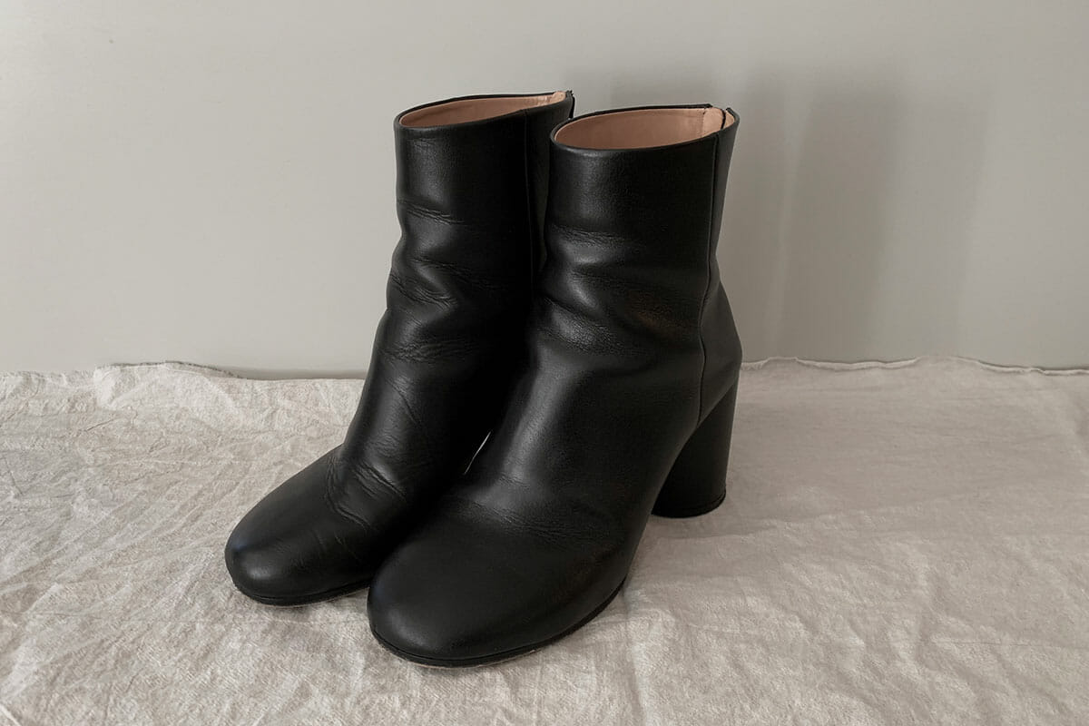 表参道の骨董通りにある『Preloved』というお店で見つけた、メゾン マルジェラの黒いブーツです。全体的に丸いフォルムなのが可愛いのと、ヒールが大きめでしっかりしているので歩きやすいんです。