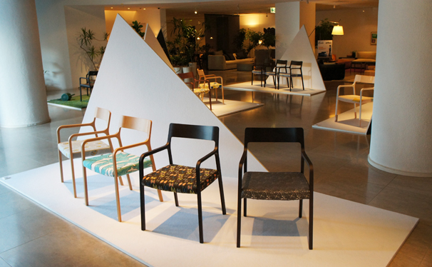 RINNチェアの座面がカバーリング方式であることに焦点を当て、ファブリックに造詣の深い5組のクリエイターにデザインを依頼。皆川明氏によるブランドminaperhonenの作品では、四季の色を4つのファブリックで表現
