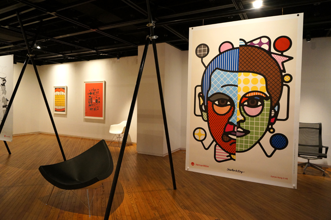 HとMをタイポグラフィックに、ハーマンミラーの家具を盛り込んだポスター