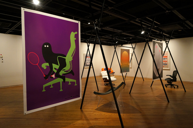 ハーマンミラーのロゴマークがあしらわれた赤い背景と、製品シルエットのこの作品はもっとも有名なポスターのひとつ