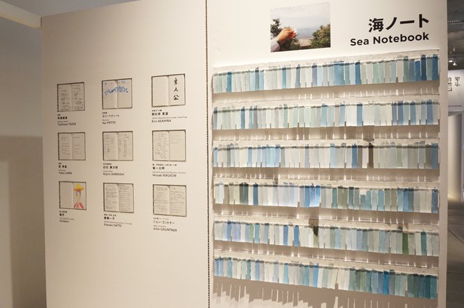 四角く区切られたブースに、これまでに開催された展覧会のダイジェストがテーマごとに並ぶ