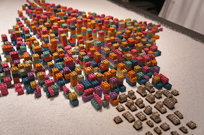 燃やすという行為は破壊的であるが、同時に香りや灰の形等新しい価値を生み出す。ものごとの二面性や物の存在について考えている。Legoはルールの中で構築するという最初の経験の象徴として考えている
