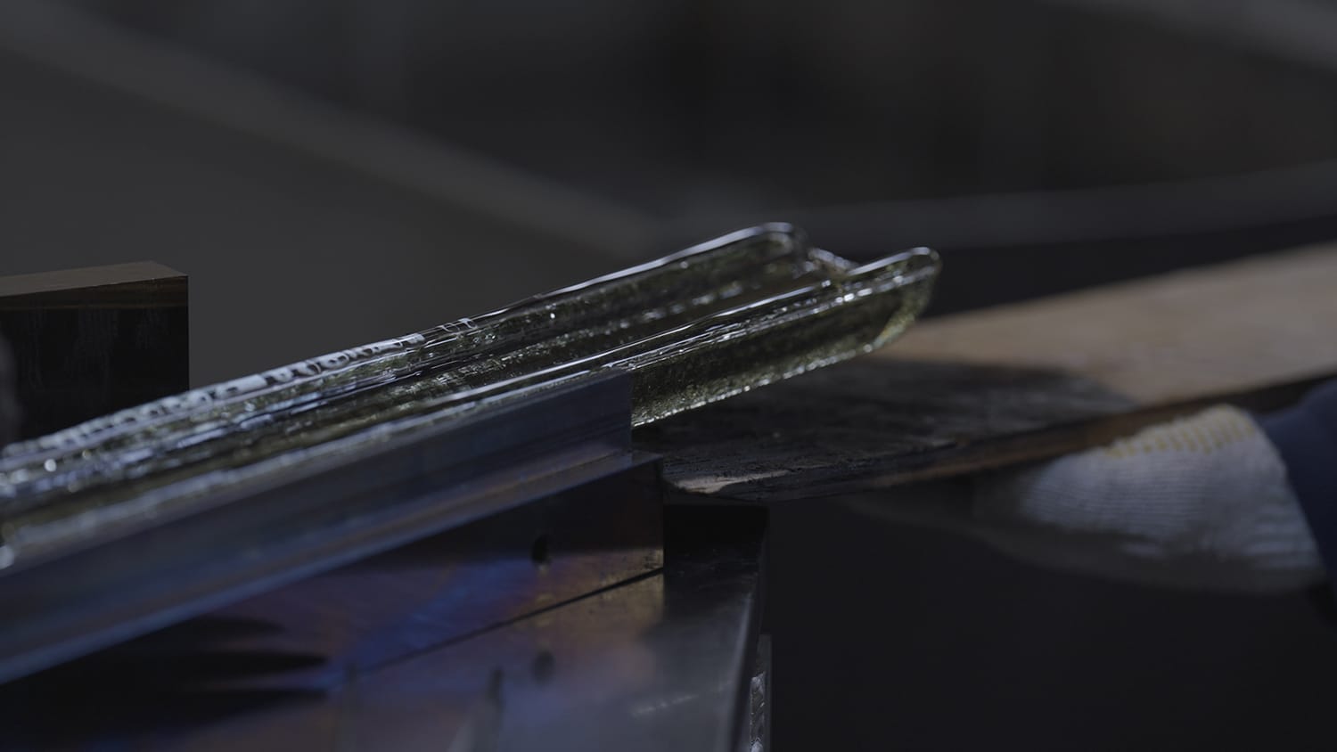 消え去りつつある蛍光灯とブラウン管は時代を越えて私たちを照らし続けてくれました。さまざまな光の記憶を携えた素材を集め、丁寧に扱い、再び熱を孕み、姿形を変え、新たな光を纏う。「太陽」の存在そのものをすくい取ったような、熱を帯びながら光輝くリサイクルガラスの姿は、まさに過去の光と未来の光を繋ぐマテリアルであると感じています。