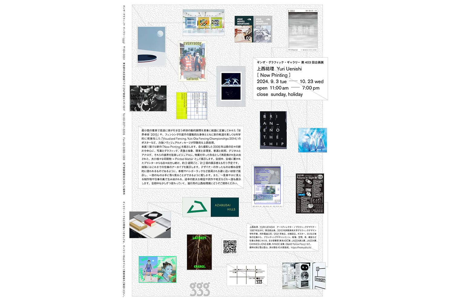 1987年生まれ。東京都出身。2010年多摩美術大学グラフィックデザイン学科卒業、同年電通入社、2021年独立、北極設立。 ポスター、ロゴなど単体の仕事から、ブランディングやキャンペーン、映像、空間、本、雑誌など仕事は多岐にわたる。2024年には自身初の個展、「上西祐理 now printing」をginza graphic galleryにて展示。主な受賞歴:東京ADC賞、JAGDA新人賞、JAGDA賞、CANNES LIONS金賞、NYADC金賞、D&AD Yellow Pencilなど。趣味は旅と雪山登山。旅は現在45カ国達成。