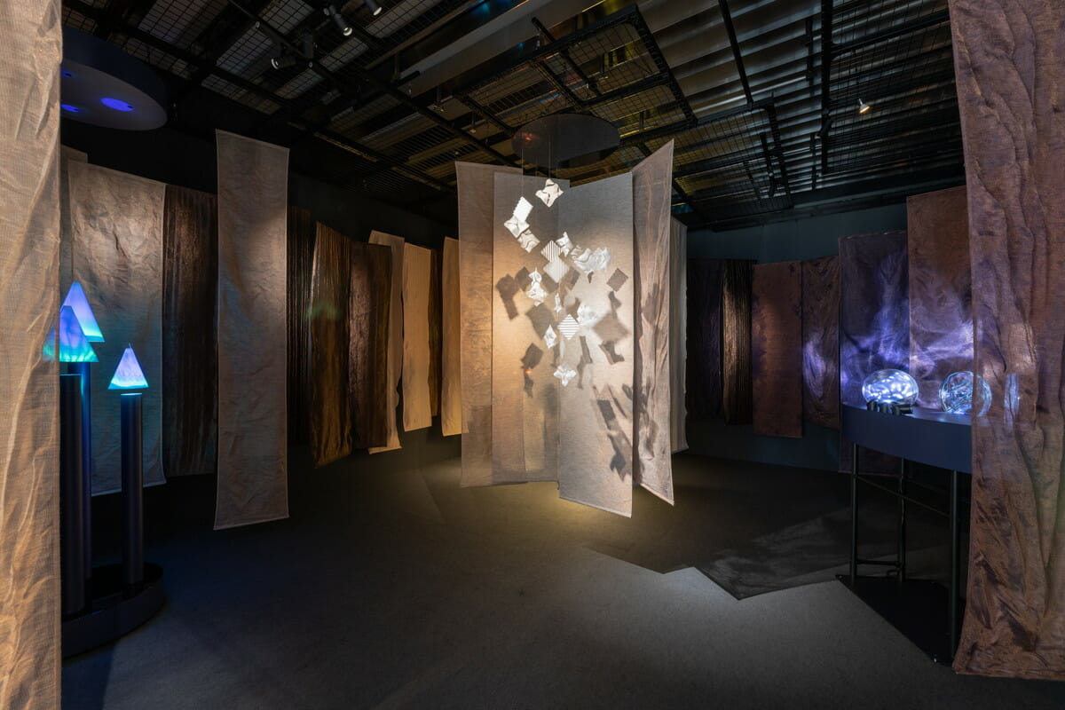 本展では複数のオブジェクトとそれらを取り巻く光や風、動きなどを通して生まれる、五感を刺激するKehai(気配)を、森の中を探求するように空間内を巡りながら体感いただけます。テキスタイルが描き出す軽快な揺らぎや、独特な表情をもつオブジェを光が通り抜けることで現れる陰影など、様々な素材が組み合わされ、光や風、訪れる人に出会うことで、その一瞬しか現れない表情を見せます。クルマの中に留まらず、LEXUSと関わるどのような時間をも、日々の複雑な思考から解放され、素に戻るような心豊かな時間にしたい、というデザイナーの想いでデザインされたアートインスタレーションの中を思い思いに巡り、様々な気配を感じ取りながら、ご自身のパーソナルな感性に響き合う発見をしていただけます。