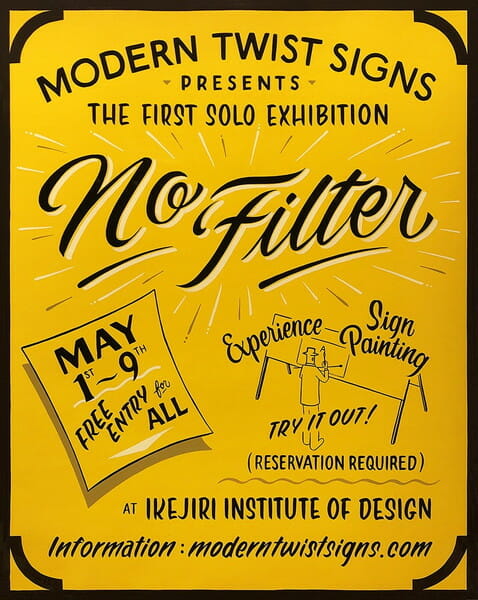 東京・世田谷のIID 世田谷ものづくり学校のIID Galleryにて、Modern Twist Signsの個展「No Filter」が5月9日まで開催します。