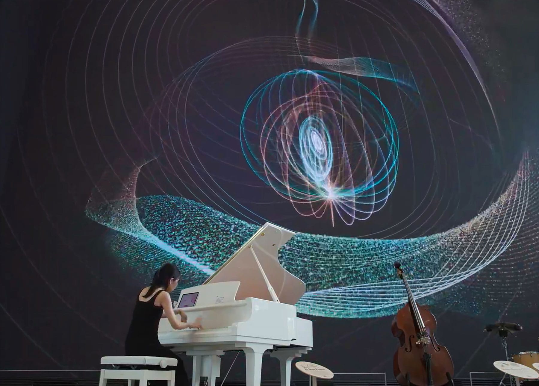 コンテンツのひとつ「AI Duo Piano」は映像とリンクしており、滑らかに弾いた時や激しく弾いた時で違う映像があらわれる