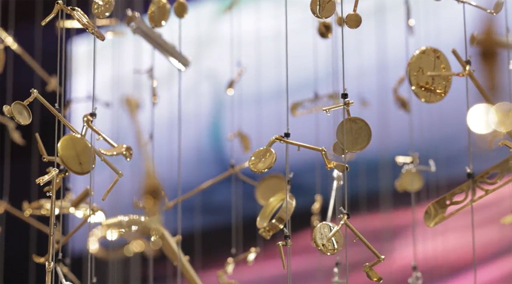 矢加部:また、「音を見上げる」をテーマにした「Art of Sound」では、トランペットやクラリネット、 フルートなどのパーツを使って巨大なオブジェをつくりました。ヤマハさんの楽器づくりへのこだわり、クラフトマンシップを伝えるために、パーツ一つひとつの配置や向きまでこだわっています。ある場所から見ると“あるカタチ”が浮かび上がる隠しギミックもあるので、ぜひ実物を見ていただきたいです。