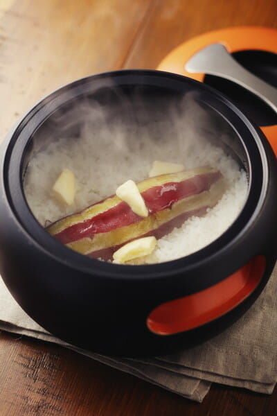 素材価値が高く、加工が「切削」に限定される中、素材の性能(鉄鋳物鍋の5倍の遠赤効果と4倍の蓄熱性)を最大限に引き出しつつも、使いやすさや高い質感と官能的な美しさのバランスを追求。縦断面でみた形がスーパー楕円のアイデアにいたった。キッチンやテーブルと調和する力強いシンプリシティを大切にしながら、使うほど愛着の湧くレトロな味わいと色合い、新素材の未来を感じるフォルムと仕上げにこだわった。さらにユーザーが、高揚感を得られるようなものにしたいと考えた。