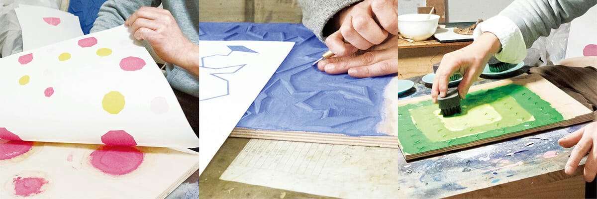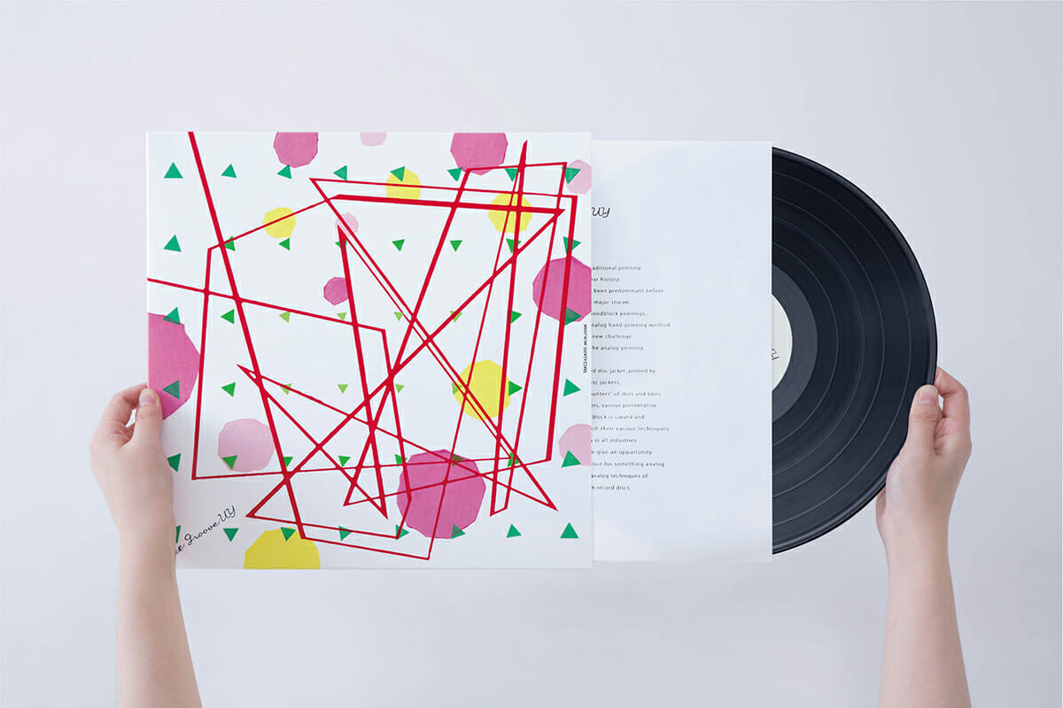 これまでにない木版プロダクトはできないか。代表と一緒に考えたのが、レコードジャケット。木版もレコードも共にアナログという親和性の高さに着目した。喜怒哀楽などの10個の感情を点と線と面で表現。感情を自由に組み合わせて摺ることで、オリジナルジャケットをつくることができた。