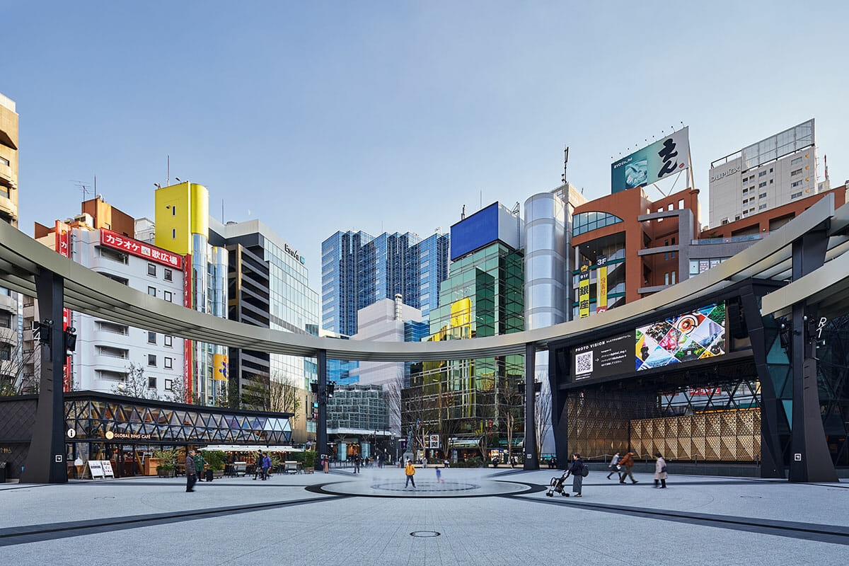 各建物のファサードデザインは隣接する池袋の名建築、東京芸術劇場とメトロポリタンプラザの幾何学性から着想を得た三角形をモチーフとしたファサードにして、街になじませた。広場のおかげで、コロナ禍でも換気抜群の中でソーシャルディスタンスをとって客席を並べてイベントを開催することができる。