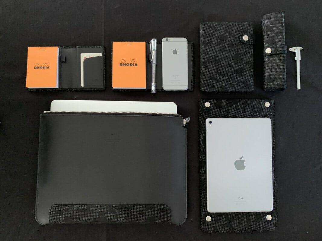 山梨県の伝統工芸の「印伝」の手触り感に着目し、デジタルガジェット用カバーや、文房具用などの革小物をデザイン。山梨県産業技術センター外部アドバイザーとして関わった第一弾プロジェクト。