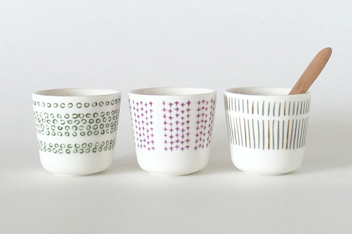 株式会社キントーさんの食器の柄をデザインさせていただいたことがあります。和食器のSHUSHUは食材をモチーフに、洋食器のSLOW MORNINGは布材をモチーフにして、食卓に自然に溶けこむようにしています。