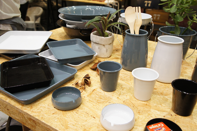 ホワイト、グレー、ブラックと落ち着いた色展開でシンプルに仕上げたホウロウシリーズ
