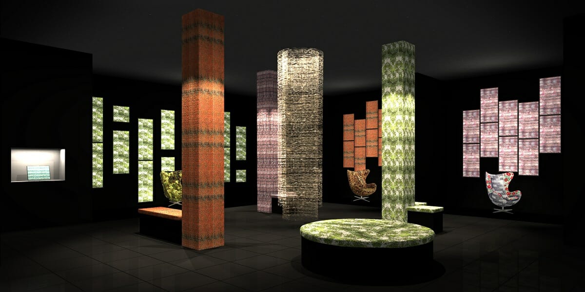 展示作品は、見る角度や光の当たり方でさまざまに表情を変える「光を操る」織物。デザインの源となったのは、2019年と2020年に東京でおこなわれた「織物屋の試み」展でフリッツ・ハンセンの名作エッグチェア(Egg™)の椅子張生地として伝統技法で制作された織物の中から、ファッションデザイナーの三原康裕、ロク・ファン、井野将之らとコラボレーションした3種のファブリック。「苔」や「錆」をモチーフに、箔糸や意匠撚糸など、さまざまな糸や織の技法を使った新作織物が展示される。