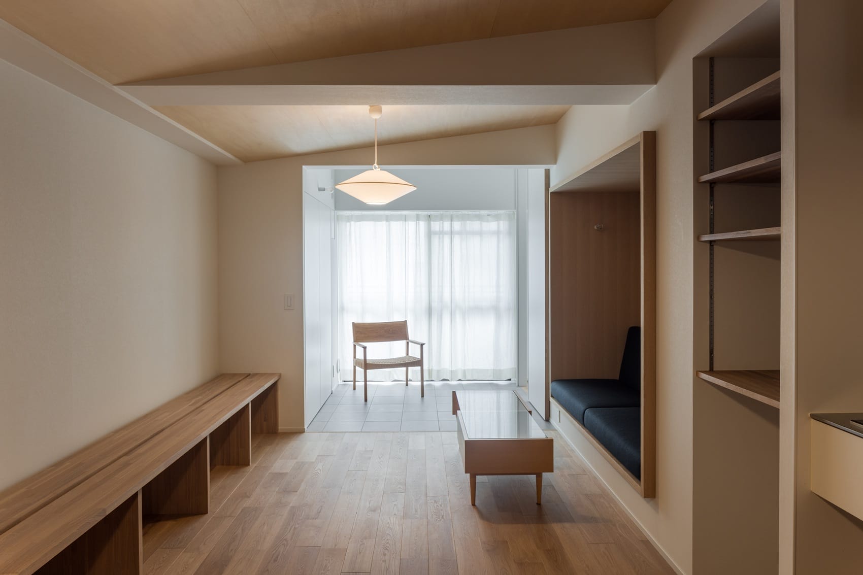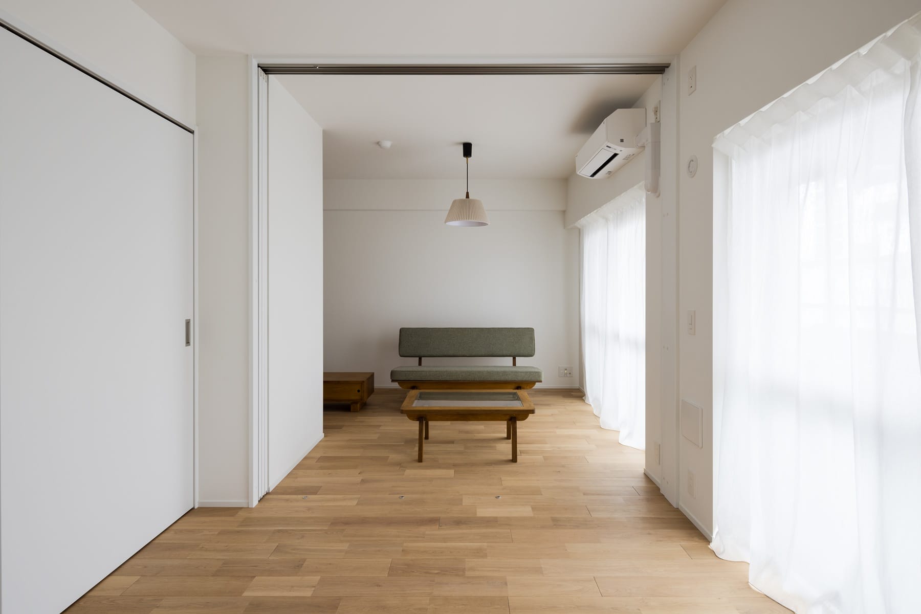 今回のプレスツアーでは、クリエイティブディレクションを担当したgrafの服部滋樹さん、富士建設の加納優希さん、アートディレクションを手がけたidoの飯田将平さんらと共に、実際にリノベーションが施された2棟のマンションを見学した。