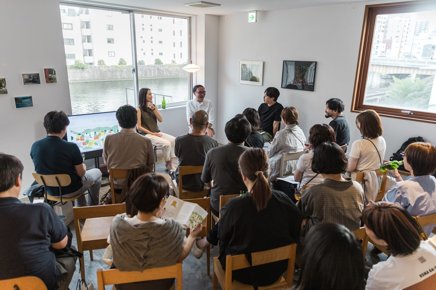 トークセッションでは、服部さん、加納さん、飯田さんのほか、プレスツアー参加者なども交えながら、住まいに関する課題や実例を共有。クルリブによって生まれる新たな可能性や住まいのあり方、サービスに賛同してくれる仲間づくりの重要性などが語られた。