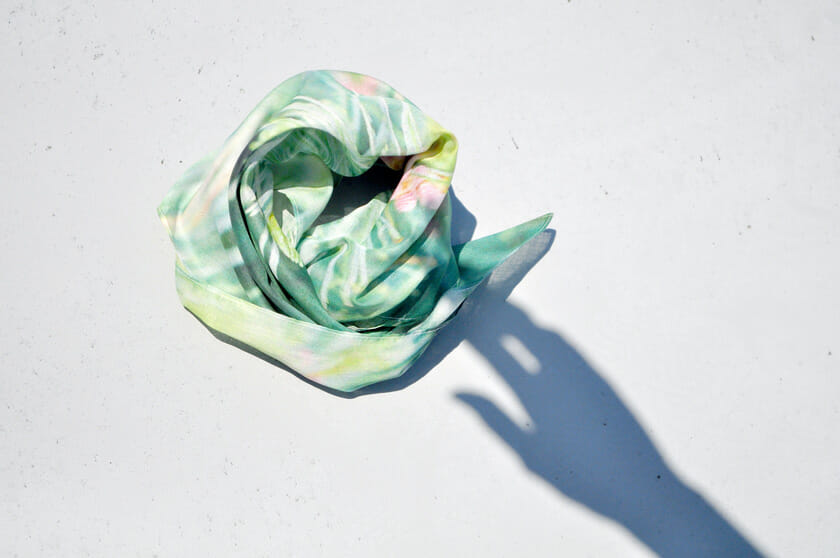 ハンカチにした理由は、「美しい山の景色を乗せるにはできるだけシンプルで、機能がありすぎないものがいいと考えました。光に透ける薄手の生地には透き通った山の空気感と、届きそうで届かない、とらえどころのない山への思いを込めています」と、鈴木さんは話す。