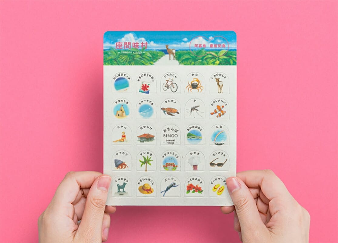 現在のバリエーションは「おさんぽBINGO」「おさんぽBINGO-TOKYO-」、そして各施設や事業体とのコラボ企画で生まれた「おさんぽBINGO-zamami Village-」の大きく3つ。いちばんスタンダードな「おさんぽBINGO」は、まち/はる/なつ/あき/ふゆ/すいぞくかん/うみという7パターンあり、出かける場所や季節に合わせて使い分けられます。