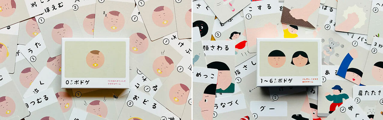 佐藤ねじさん率いるブルーパドルが考案した、いるときだけ遊べるカードゲーム「0歳ボドゲ」と「1~6歳ボドゲ」。ゆっくりボードゲームで遊べない人向けに、逆に小さな子どもがいることで遊べるゲーム。