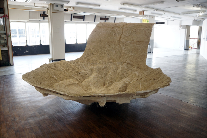 街に身体をこすりつける、全身を地面に埋める、掌のみを地表にさらす……など、身体と世界の激しい触れ合い=直接的な交感を重視する彫刻家・二藤建人。「山頂の谷底に触れる」「誰かの重さを踏みしめる」など、複数の作品が展示されているが、いずれも二藤自身の思考が身体そのものを通して表現されているように感じられた。