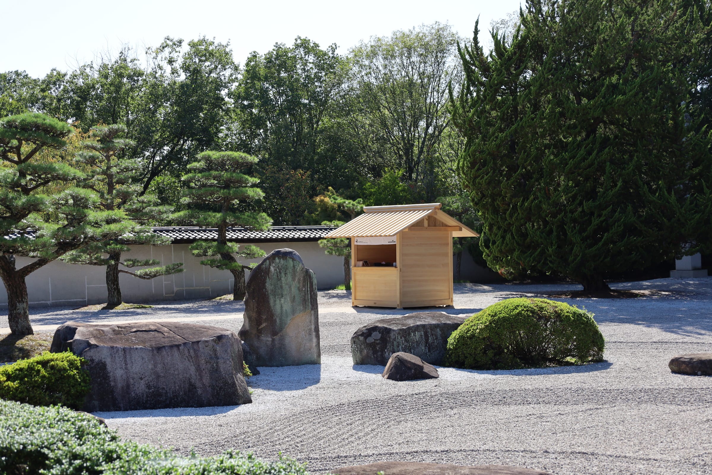 普段は立ち入ることができない枯山水の中に道がつくられ、その先に設置された「つぼや」
