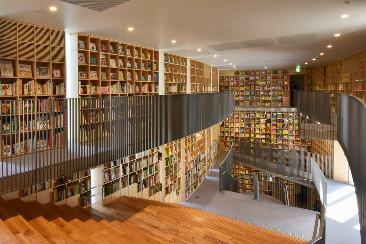 これは「こども本の森 中之島」という、僕がクリエイティブディレクターをしている施設です。大阪・中之島にある東洋陶磁美術館の真横にできた新しいこどもの本の文化施設で、安藤忠雄さんが建築を手がけ、大阪市のために建物を寄贈されています。僕らは市民から寄贈された4000冊に加え、新たに1万4千冊を選書していて、それらを配架するだけじゃなく、家具計画やサイン計画、グッズ制作やアートディレクション全般を指揮する立場でした。