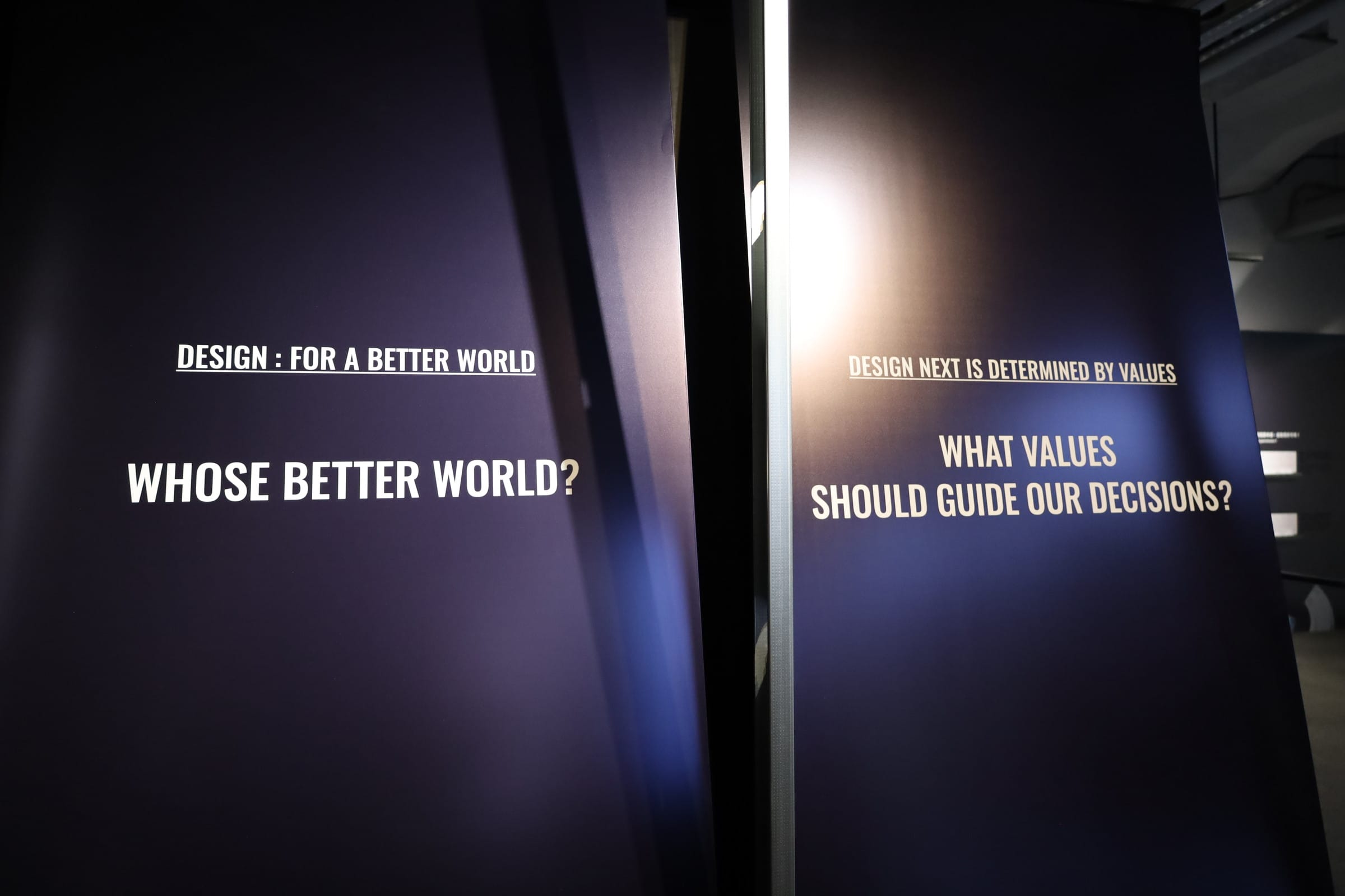 どのような価値観に基づき判断をおこなうべきか、来場者に問いかける展示