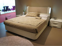 【 1 】 ベッドのヘッドボードとサイドチェストの立体的な造形に目がいく