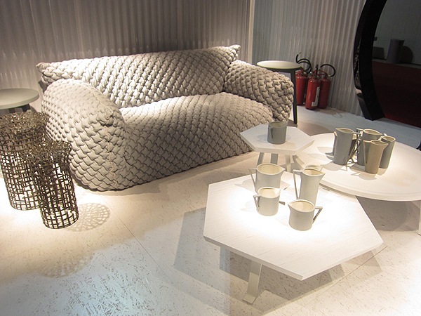 今回の見本市の中で、インテリアデコレーションという視点から、総合的に空間のディレクションをしていたクリエイターは誰か? と問われれば、パオラ・ナヴォーネ以外に該当する人物は存在しないであろう。プロダクトにひとつひとつに対する独創性は周知の通りであるが、それだけではなく、そのプロダクトが配置されるスペースを創出し、視覚的なデザイン効果を加えることで、他のクリエイターの表現とは差別化された、リアル、かつ幻想的なアートディレクションを展開している。