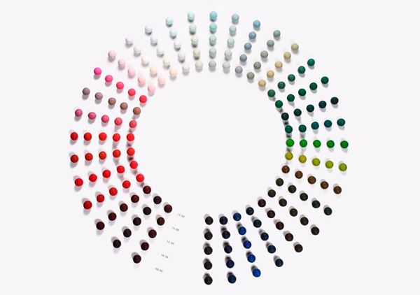Life Stripeとは、一日の行動を21色のカラーに置き換えそれらを24時間の時間軸に沿って記録することから生まれる「生活の模様」。とびきりの一日もあれば、悲しい一日もある。もちろん、ごく平凡な一日も…。そうしたさまざまな一日を、文字でも写真でもなく、色彩のパターンで表現しています。毎日を確認し、Life(生命・人生・生活)を感じとる。生きた事実は美しいパターンを生み出します。