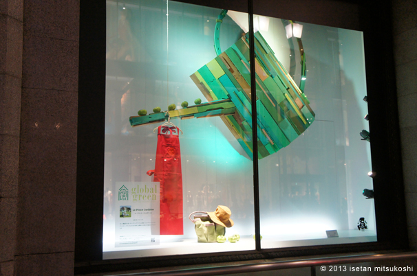 時代が投げかける問いは難しい。私たち、人と、地球のことを考えると、もう何も作り出さないほうがいい。もう何も買わないほうがいい。なんて思いさえする。でもそんなことなんてできるわけないし、そんな生き方なんてつまらない。好きな服と好きな食べ物と、好きな地球を一緒に想う。人と地球の自然な関係。三越伊勢丹が取り組んできたグローバル・グリーンキャンペーンの展示。
