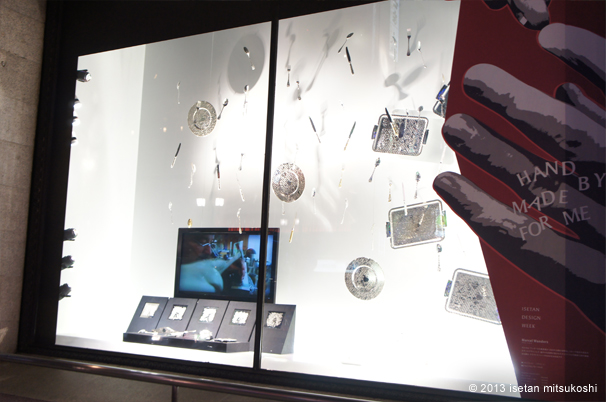 「素材」、「道具」、「工程」、「人の写真」、「ファクトリーの風景」など、普段、表舞台にはなかなか出ることのない作品を産み出す行為に関わる様々な要素をウィンドウに集積。プロのクリエイターが、実際に手を使って行う卓越した手仕事の技や、伝統に裏打ちされたもの作りの奥義、クリエイターがイマジネーションを形にする際の様々なアプローチなど、ものづくりの背景に存在する「ハンドメイド」の魅力を伝えている。