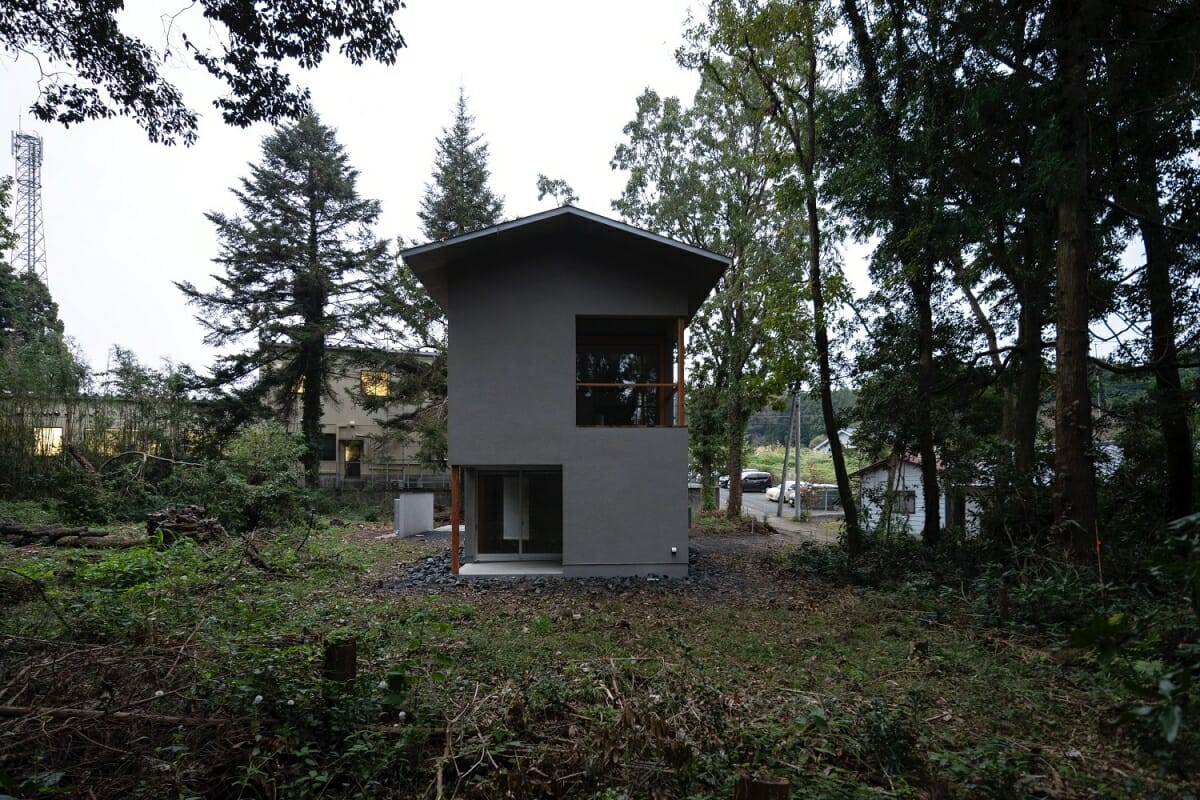 敷地は富士山南麓の町の北部に位置する。建て主の父親が古くから所有する農地で、周囲を20m以上ある樹木に囲まれ、北側には比較的大きな工場がこの敷地を見下ろすように建っている。