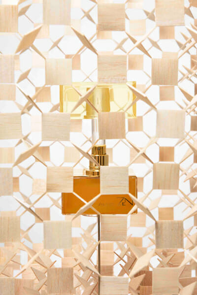 「ZEN」という香水には日本的な市松紋様、「SHISEIDO MEN」には、シャープなシルバーのアルミと丸みを融合させて、「Ever Bloom」は香水瓶のカーブをエッセンスとして3Dの紋様にしています。すべて約20mmの小さなパーツを、格子状のレイヤーで構成しています。