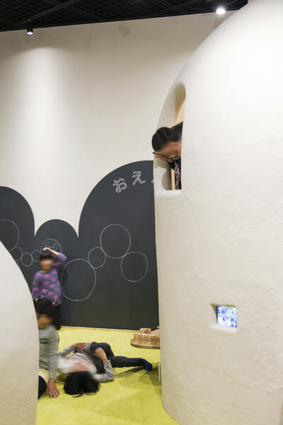 山並みのような3つのかまくらドームは形や機能が異なり、ベンチ、書棚・検索コーナーなど、ライブラリーの機能を備えている。本を読んだり、タブレット端末でインターネットやクイズを楽しんだり、お絵かきをしたり休憩したりと、子どもたちが遊び方によって日々さまざまな居場所を発見できるようにした。